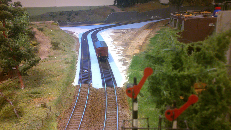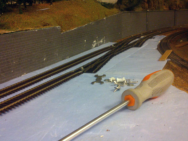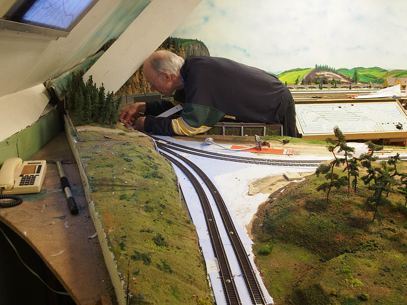 Door verschillende omstandigheden ging dit werk bijzonder langzaam. Nu kunnen we eindelijk treinen laten testrijden en ervaring op doen met de wisselbediening via servo's. Eerste ervaringspuntje is dat servo's eerst een paar keer moeten proefschakelen voordat er treinen overheen gestuurd kunnen worden. Soort van warm draaien van de bediening. Momenteel wordt er met meer en verschillend materieel testgereden en wanneer dit goed gaat en de electronische aansluiting van secties en bezetmelders klaar is kan het scenery team aan de slag om de rails te ballasten en het landschap weer op orde te krijgen.