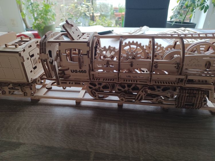 Een heel ander voorbeeld van spoorwegmodelbouw is onderstaande houten modellocomotief. Opgebouwd uit een bouwpakket met gelaserde onderdelen en verder alle andere benodigdheden.
