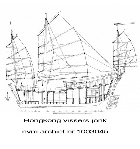 Na verder overleg is besloten om de bestaande maten met 50% te vergroten. De bestaande tekeningen zijn aangepast en daarvan is een spantenmodel getekend, dat niet de originele spanten van de jonk gebruikt, maar de waterdichte schotten. Deze schotten en de verhoogde keilbalk zijn op 6mm eiken overgebracht en worden uitgezaagd. Ondertussen wordt er een stevige ondergrond of bouwhelling gemaakt waarop ons model kan worden ingeklemd om vervorming te voorkomen. Deze is geschikt om het model in meerdere posities vast te zetten ten behoeve van het planken van de huid, aanbrengen van onderdelen afwerking e.d.