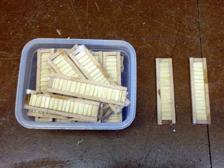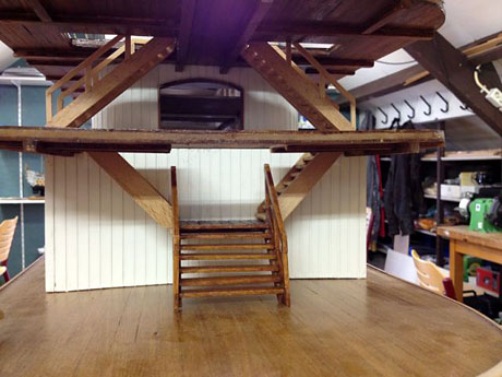 Door Daan de Zeeuw en Liek Bouma worden de kozijnen, deuren, louvre luiken, trappen en hekjes gemaakt en in de behuizing geplaatst. Een extra uitdaging is het maken van de relingen waarvoor we ongeveer 800 pilaartjes hebben aangeschaft en waarmee we een bijzondere verfraaiing kunnen bereiken. Zoals je op bijgaande foto’s kunt zien wordt alleen al door het plaatsen van de palen een grote verandering bereikt in de aanblik van de boot.